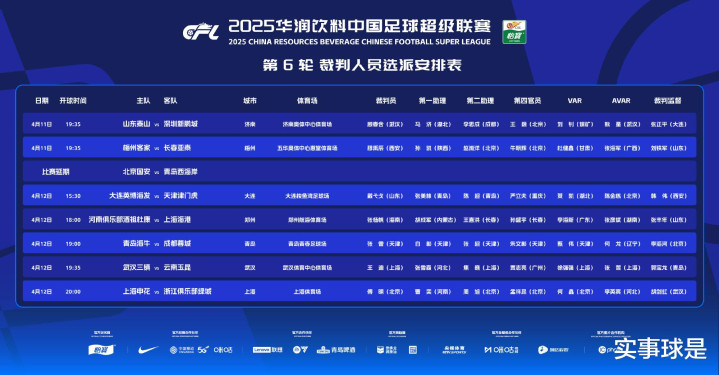 发布日期:2025-04-13 23:23 点击次数:1984月11日(周五)、12日,2025赛季中超联赛展开第6轮角逐。赛前,中国足协发布了本轮裁判人员选派安排表。